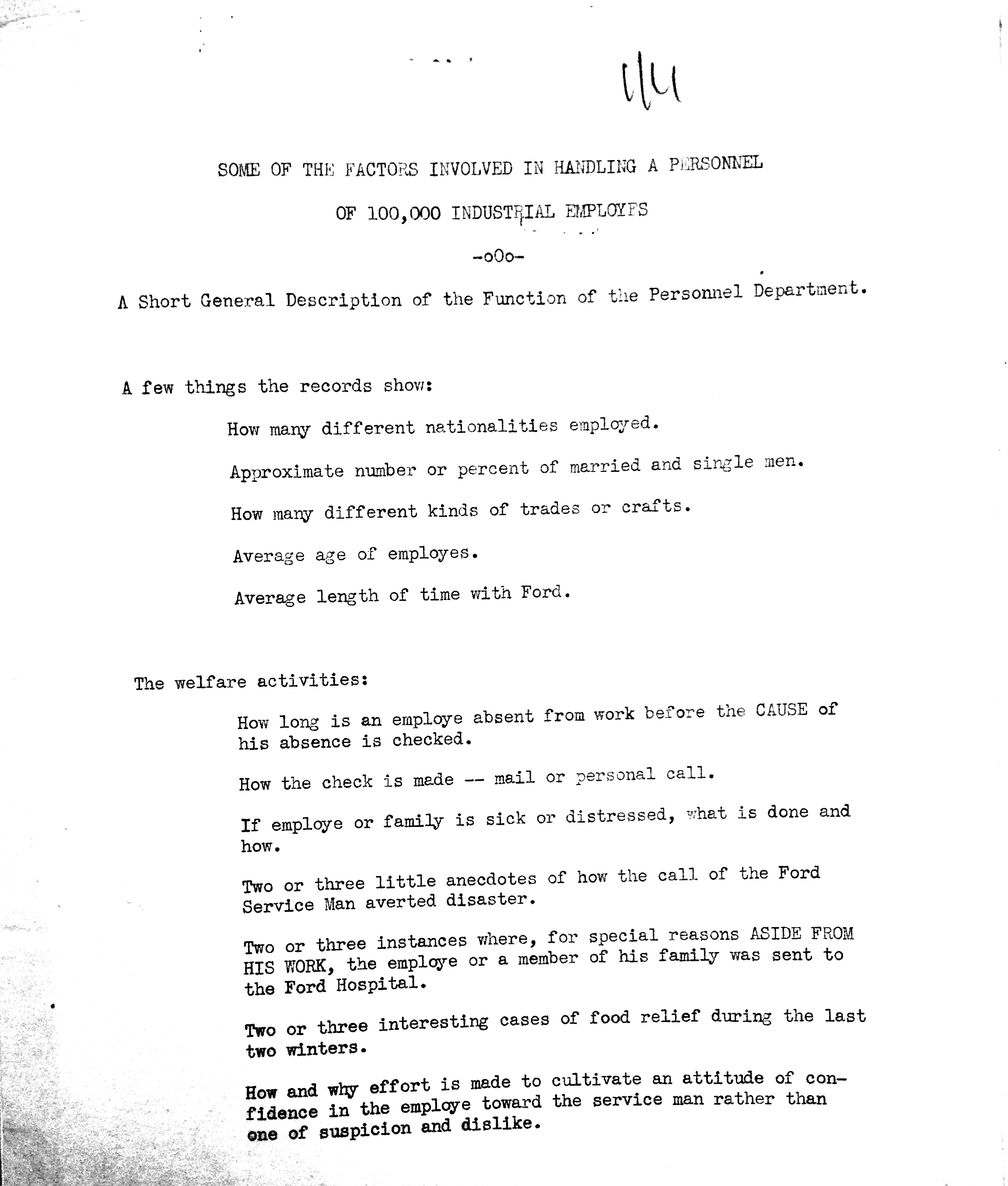 Henry Ford had a paternalistic approach to his workers. He instituted an Americanization program for white European immigrant workers, which partly consisted of mandatory English language classes and home inspections from company “sociologists.” Ford was one of the only auto industry employers willing to hire African Americans in the early 1900s, but he soon segregated them into the “3Ds” — dirty, dangerous and demeaning jobs.